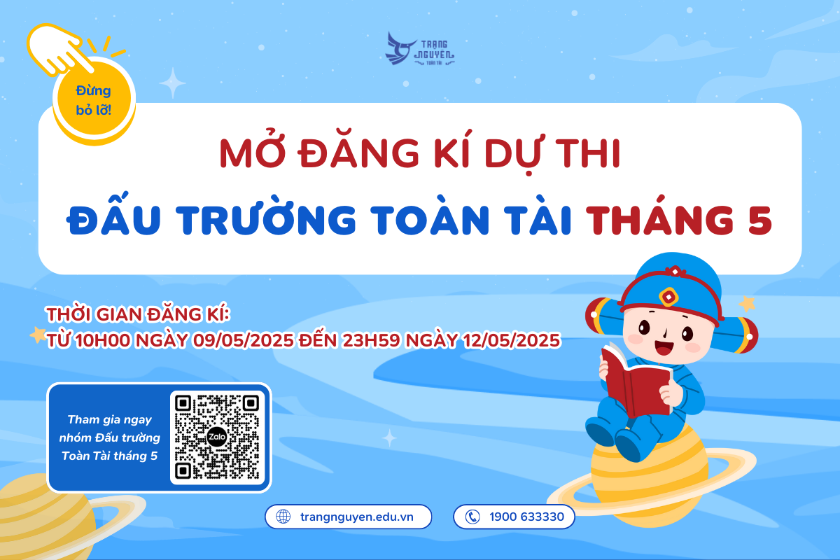 Ban tổ chức hy vọng rằng Đấu Trường Toàn Tài tháng 5 sẽ là một sân chơi trí tuệ, giúp các em học sinh phát huy tối đa khả năng và kiến thức của mình. Ba mẹ hãy đồng hành cùng các em, chuẩn bị đầy đủ các thiết bị cần thiết theo hướng dẫn và kiểm tra kết nối Internet trước khi bước vào cuộc thi, góp phần giúp các em có trải nghiệm thi tốt nhất. Chúc các thí sinh ôn luyện thật tốt, thi thật thành công và đạt kết quả như mong đợi!