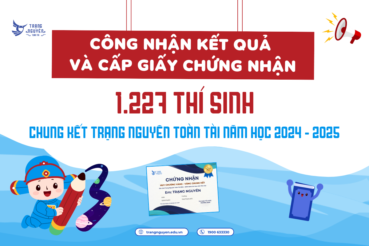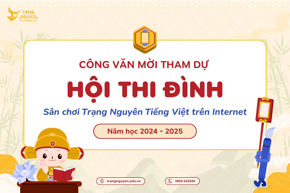 BTC sân chơi Trạng Nguyên thông báo: Chính thức công nhận giải, cấp giấy khen và giấy chứng nhận cho 372 học sinh tham dự Hội thi Đình - cấp Quốc gia sân chơi Trạng Nguyên Tiếng Việt trên Internet dành cho học sinh tiểu học năm học 2024 – 2025.